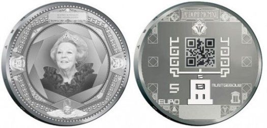 在已經(jīng)公開的一枚樣品中,硬幣正面是荷蘭女王的頭像,背面則是一個二維碼,經(jīng)過解碼后其指向的是荷蘭國家造幣廠的網(wǎng)站。目前還不清楚其它硬幣的二維碼中到底隱藏了什么內(nèi)容,但可能會是一場競賽、一個介紹歷史的網(wǎng)站或一個介紹荷蘭皇家造幣廠的視頻。造幣廠方面目前還在賣關(guān)子,反復(fù)強(qiáng)調(diào)在正式發(fā)行以后,購買者將意外地看到令人驚奇的場景。